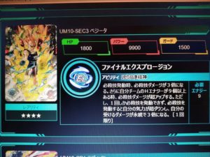 戦闘力バトル終了時、自分チームのHEが3以上ある時、自分チームのHEをー2する代わりに、自分の与えるダメージが永続で2.5倍になる。(毎回)